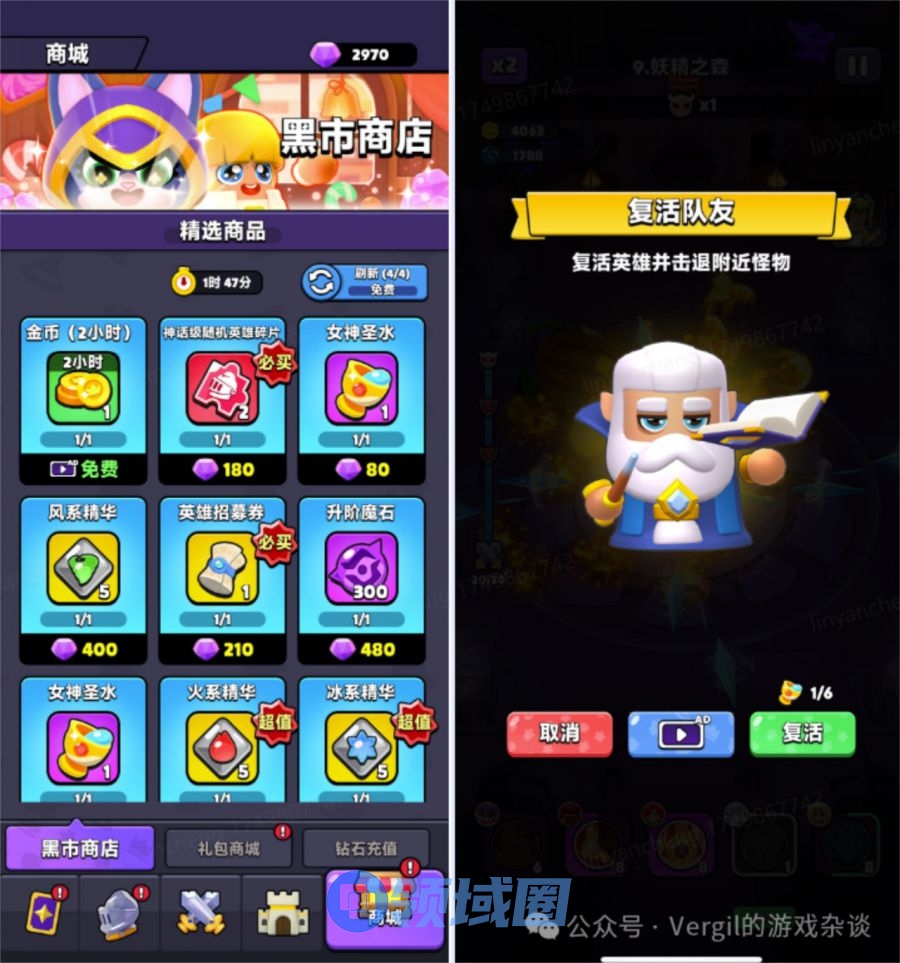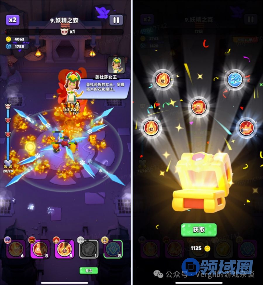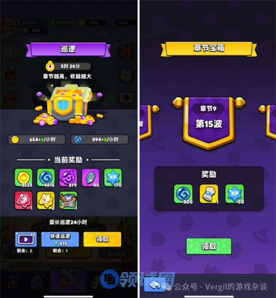 - 成熟的外围设计:以塔防玩法和肉鸽元素吸引玩家后,再用传统放置RPG模式作为衔接,让玩家从创意阶段过渡到数值追求层,这种“重包轻”的做法是近些年的主流框架