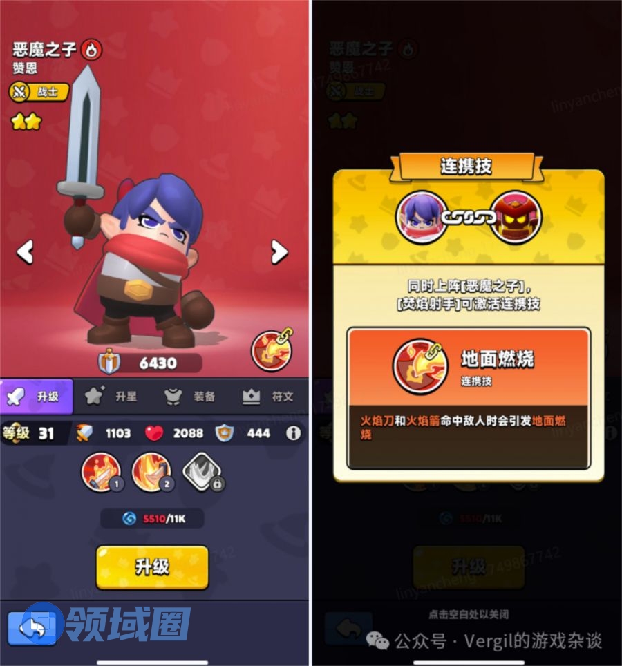 - 白色技能切分为普通和升级,再配合恰当的技能随机算法,可以一定程度避免玩家过于极限成型单英雄的情况。在实战中,玩家经常需要抉择是选择练度最高英雄的普通技能,还是其他英雄的升级技能