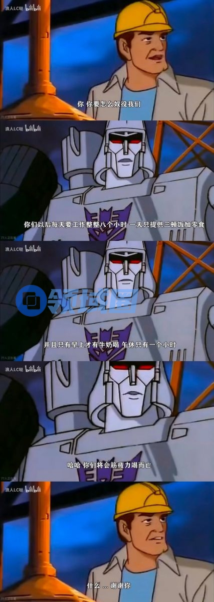 到“朝九晚五的炼狱”的时候还是有点绷不住,有种“我必须马上投靠威震天”的美。
