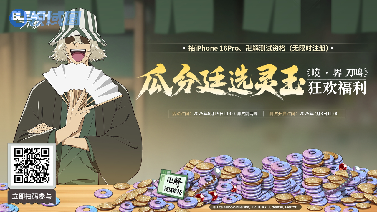 自6月19日起,扫描下图二维码或点击链接(https://bleach-soulresonance.nvsgames.cn/1000w)前往即可参与《境·界 刀鸣》预约活动,瓜分豪华廷选灵玉奖池!