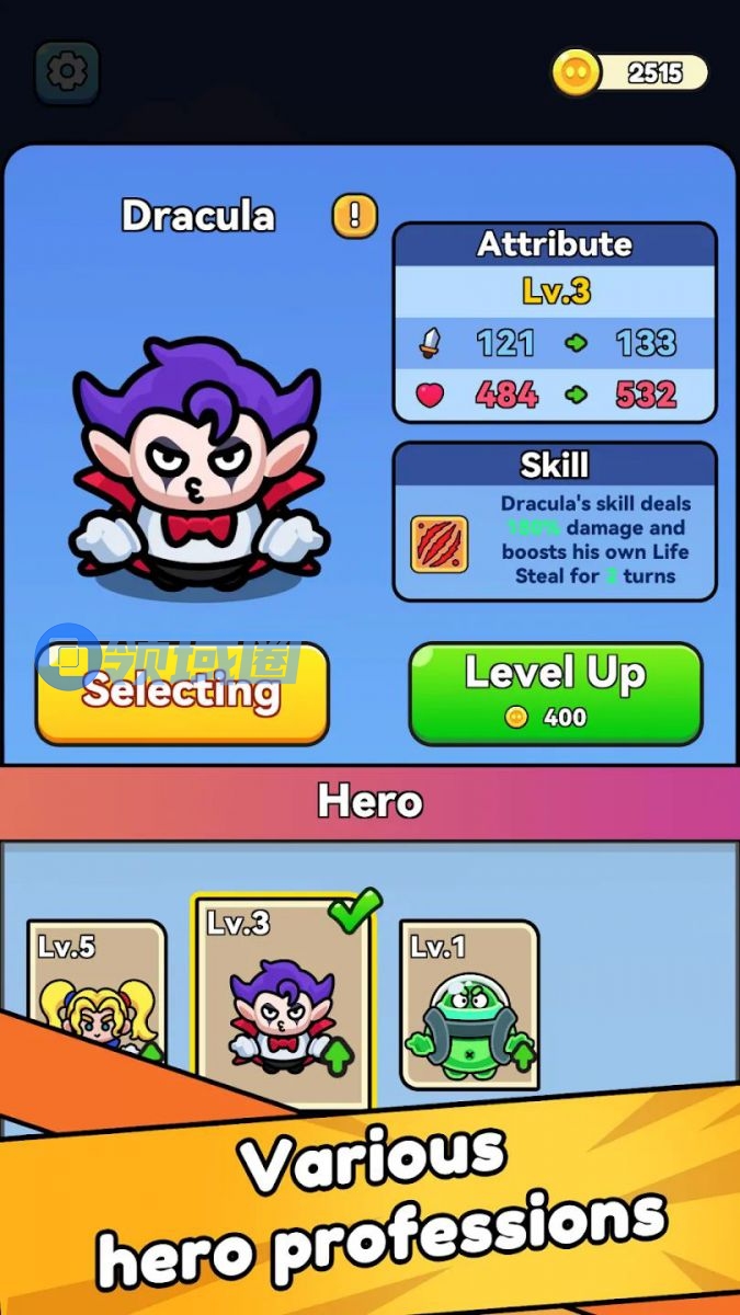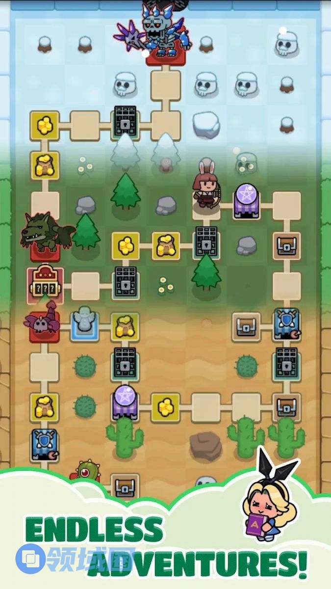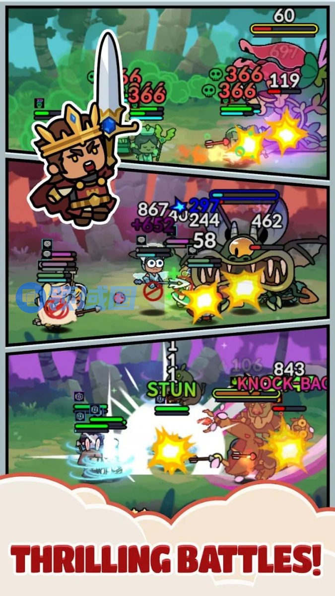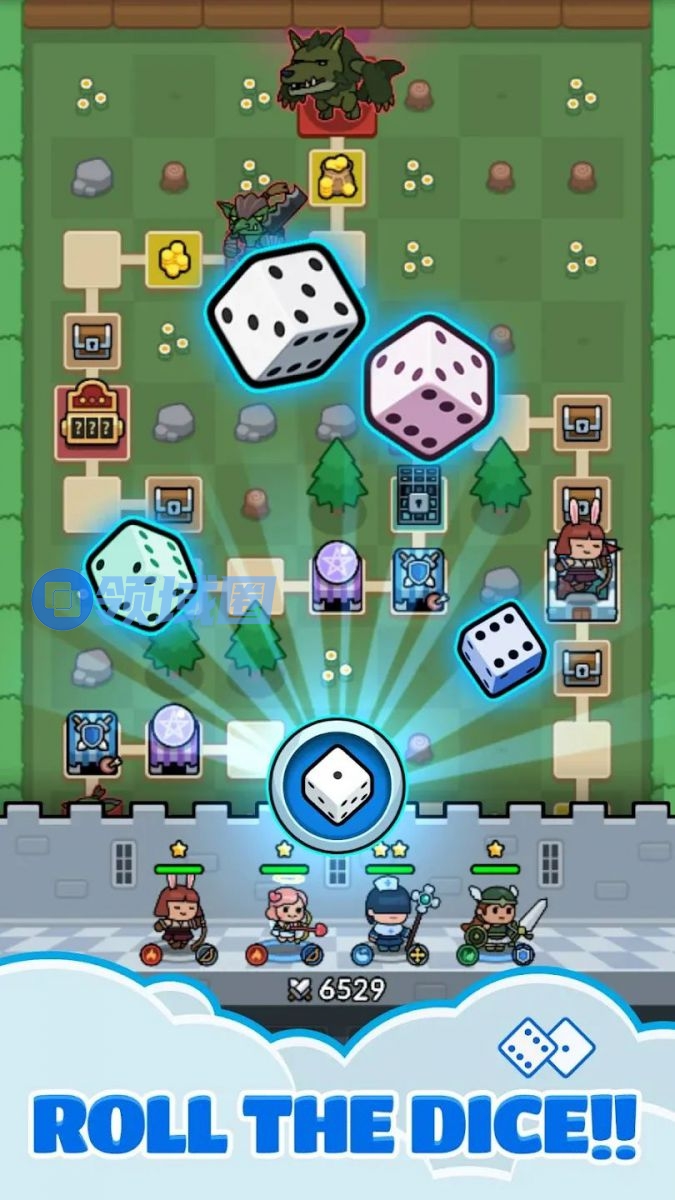 玩包装可以说又像MonopolyGO又像卡皮巴拉GO,其实都是随机触发打怪、开宝箱、商店等各种事件,然后提升自己的小队属性,小队共6个角色,分为类似T、DPS、奶等各种职业分工,2个相同角色可以合成升星,升到3星则可以升阶随机变角色。然后每一张图以打boss为结束,每一章打完所有小boss后打最终boss就算过关了,关外的一套养成就很Habby,大家应该一看就很熟悉了。