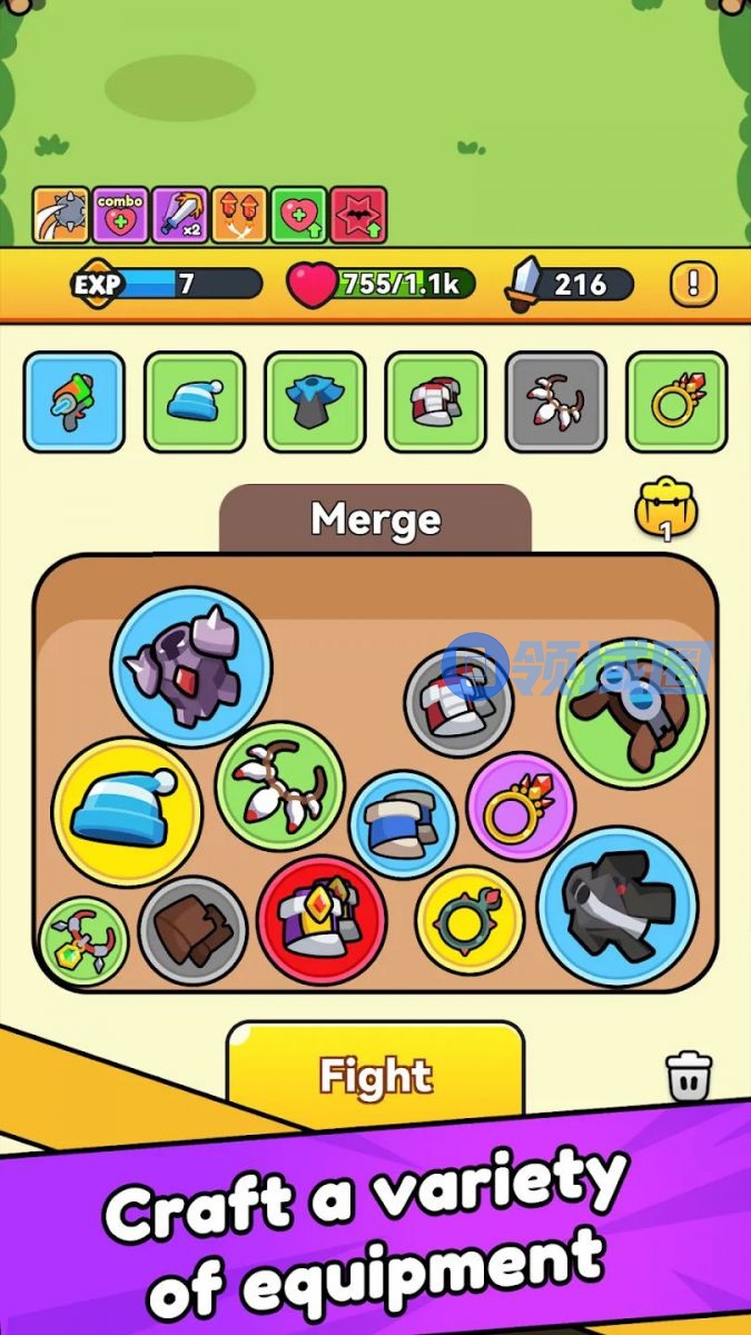 介绍:开发者信息似乎是成都掌趣,角色一个小背包,在里面合成各种装备,用二合的规则白、绿、蓝、紫合成升级,然后进行装备向前闯关。闯关规则跟《卡皮巴拉GO》类似,打怪升级、选buff、然后选择各种路线和随机奖励。