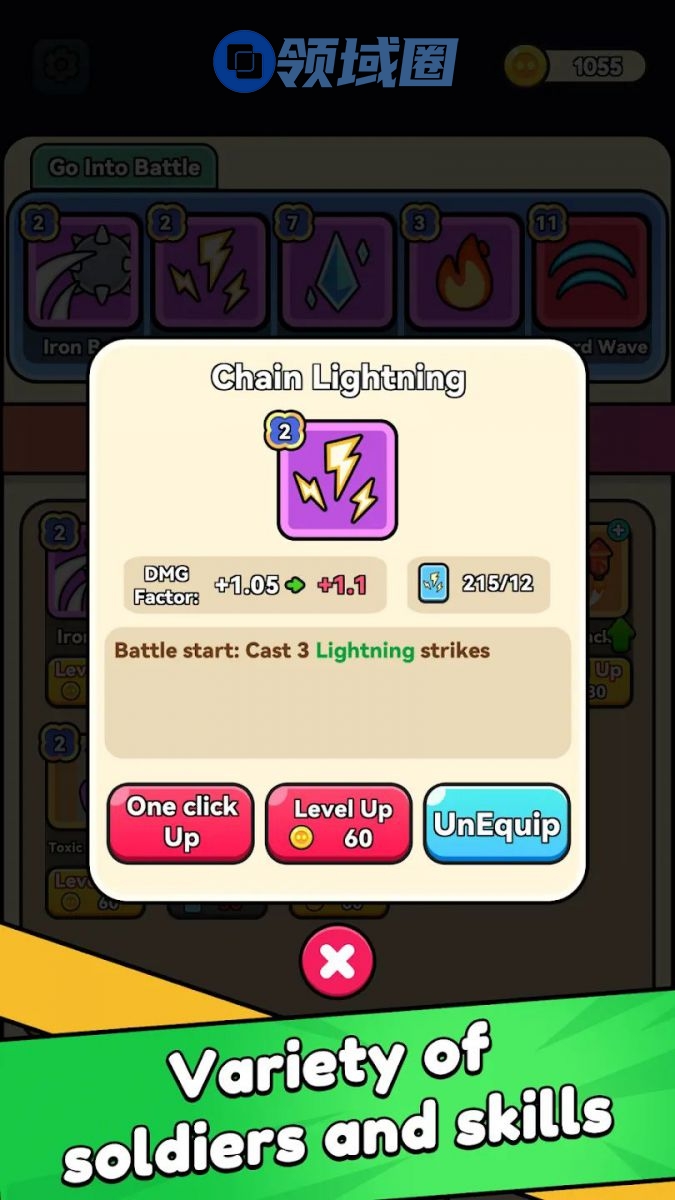 这款玩法上也是普通放置点击的玩法,点击/放置打怪得金币,金币升级强化战力,战力高了去更高级的图打怪得更多金币,大致就是这种比较传统的放置成长循环。