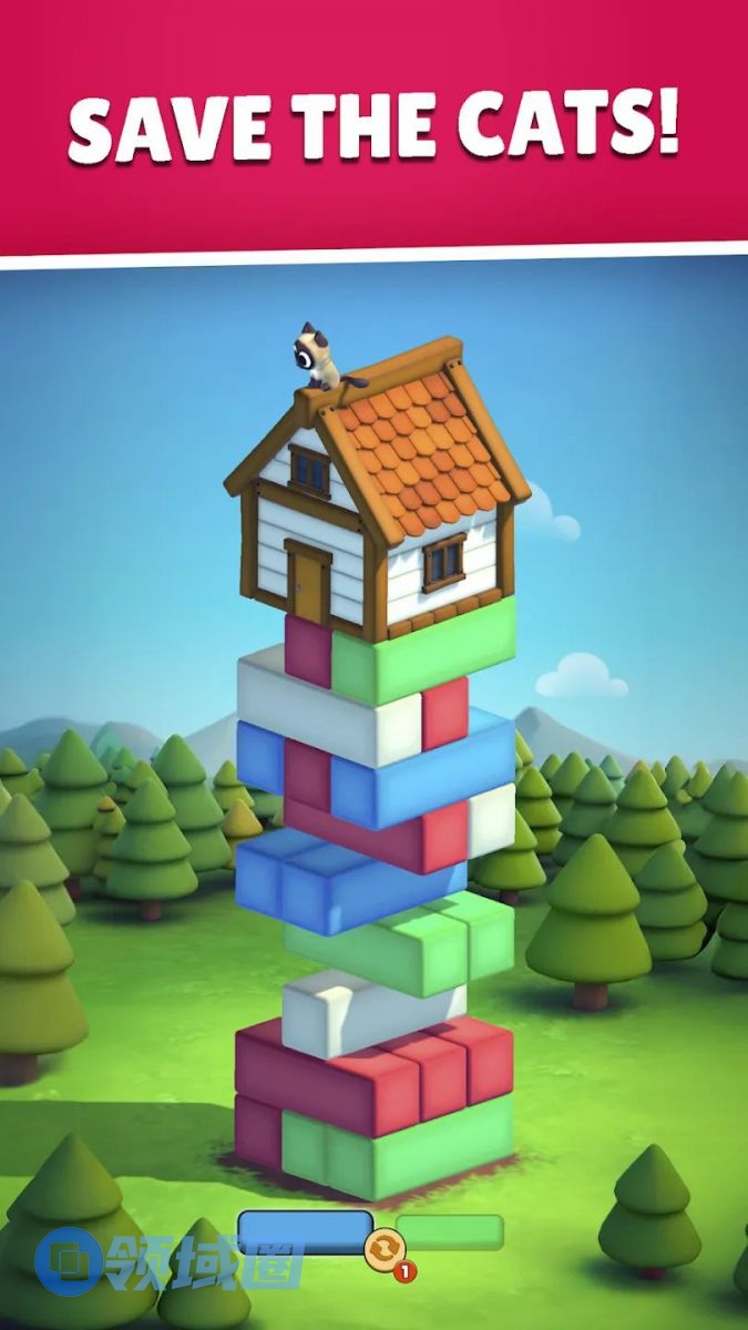 介绍:挺有意思的题材创新,玩法就是大家很熟悉的积木高塔抽积木,一人拿一块看谁不小心把积木抽倒下来。这款游戏除了把3D积木做的画风更卡通精致了之外,还额外增加了个房子+小猫的包装,相当于积木顶端趴着一只小猫,高塔倒了之后小猫也会掉下来,属于是玩法和题材很好的融合包装了,个人挺喜欢的。
