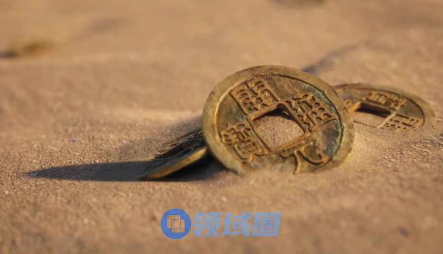 一枚铜币,外圆内方,半埋沙海,“開元通寶”的纹路清晰可见。