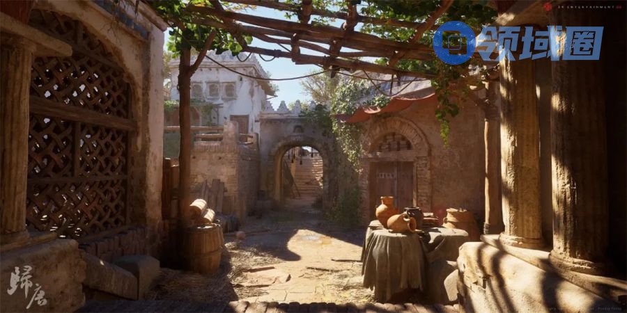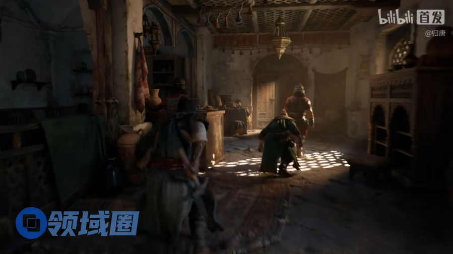 场景也不遑多让,建筑表面的砂石质感,光线漏过门窗栅栏形成的明暗观感,墙壁上繁复至极的壁画,又如角色施展拳脚时的衣袂、飘带的布料模拟,木板崩裂、细砂流动、尘土飞扬等细节表现均可圈可点。