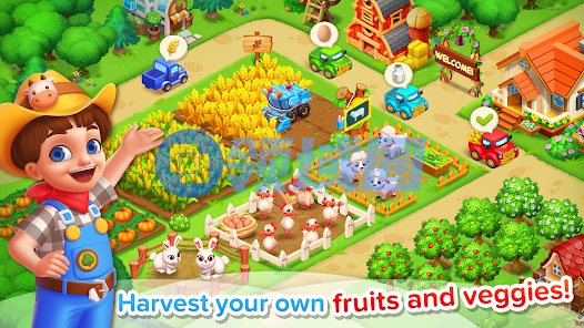 关于游戏的成功秘诀,团队认为很简单:就是“创新”。和同品类产品呈现玩法,《Family Farm》用姐弟、老人的故事做引子,吸引玩家踏入农场,展现了从生产、制作到贸易的真实现代化农场生活。