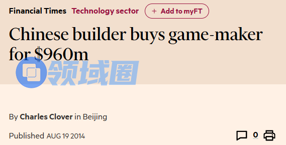 2014年8月,一桩游戏圈天价公司并购案震动游戏圈。