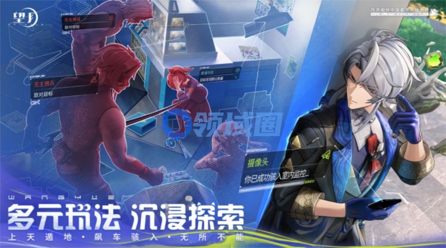 对于信息化的玩法呈现是如今许多城市化大世界游戏最看重的表达内容,比如在游戏《望月》里,玩家可以随意调取NPC与场景的数据来进行分析、解密与骇入,玩家不仅可以骇入敌人的设备、基地的机关,甚至在骇入玩法之后,游戏更进一步增加潜行玩法,让游戏的可玩性一下子丰富起来。