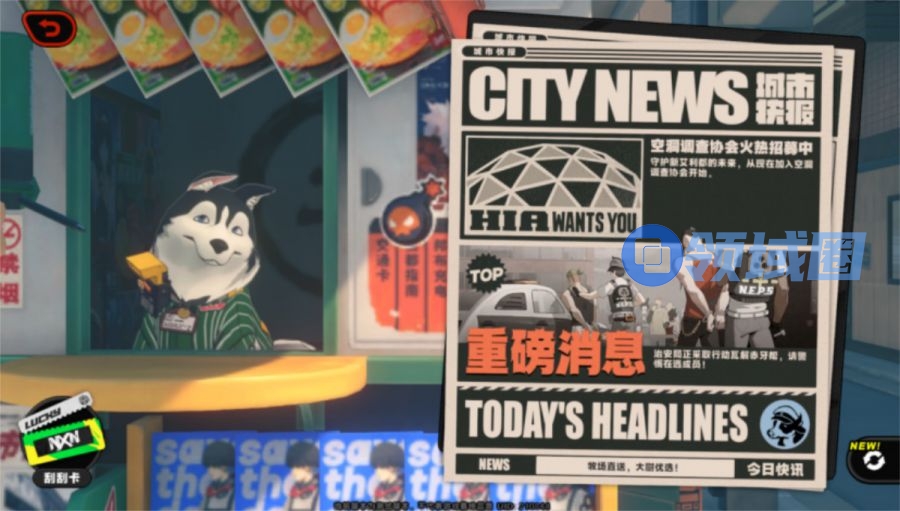 在这一点上,并非大世界的《绝区零》提供了一个不错的思路。游戏一方面透过快速更迭日报报纸的新闻速递、新艾利都时下流行文化的海报、涂鸦;这里还包括当红偶像的海报与宣传画,不同帮派角色的推广图等等直观的、高信息密度的视觉来呈现一种城市文化快速变迁的迹象。