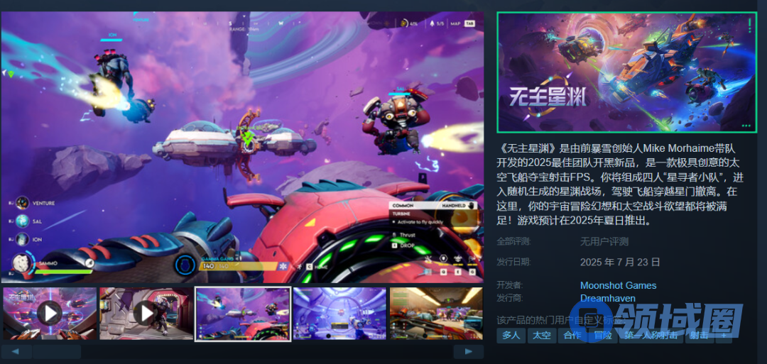 在本次暑期档,网易也将推出一款代理发行的太空飞船团队夺宝射击FPS《无主星源》,是由前暴雪创始人Mike Morhaime带队开发的一款太空版“搜打撤”新游。在游戏中,玩家们将组成四人“寻星者小队”,进入随机生成的星渊战场战斗,最终胜利条件为争夺神器并全员逃脱。目前Steam界面显示,游戏将于7月23日推出。
