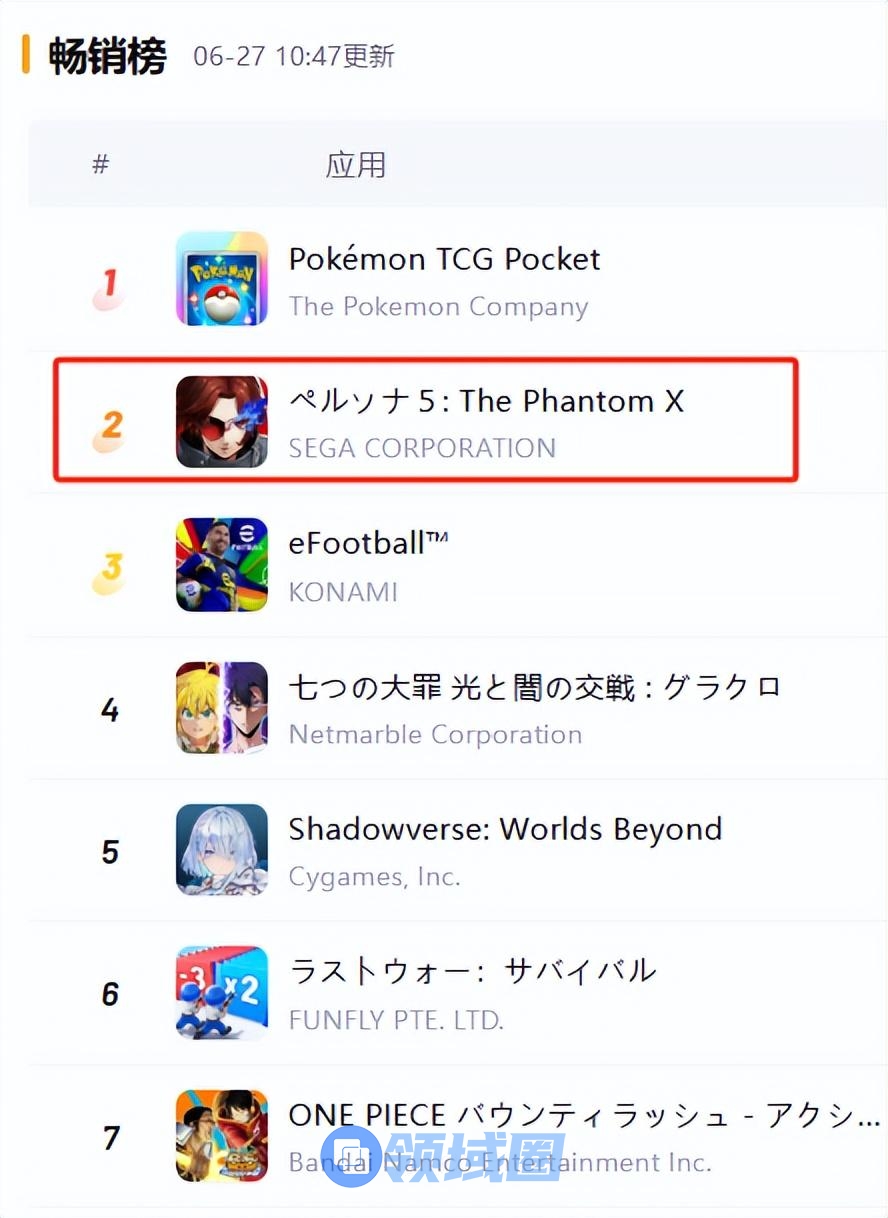 昨(26)日,由SEGA 授权、完美世界开发的《P5X(女神异闻录:夜幕魅影)》在日本、欧美地区上线,今日近10点便冲上日服游戏畅销榜第2。爬榜速度之快,促成了《P5X》在海外的最好成绩。