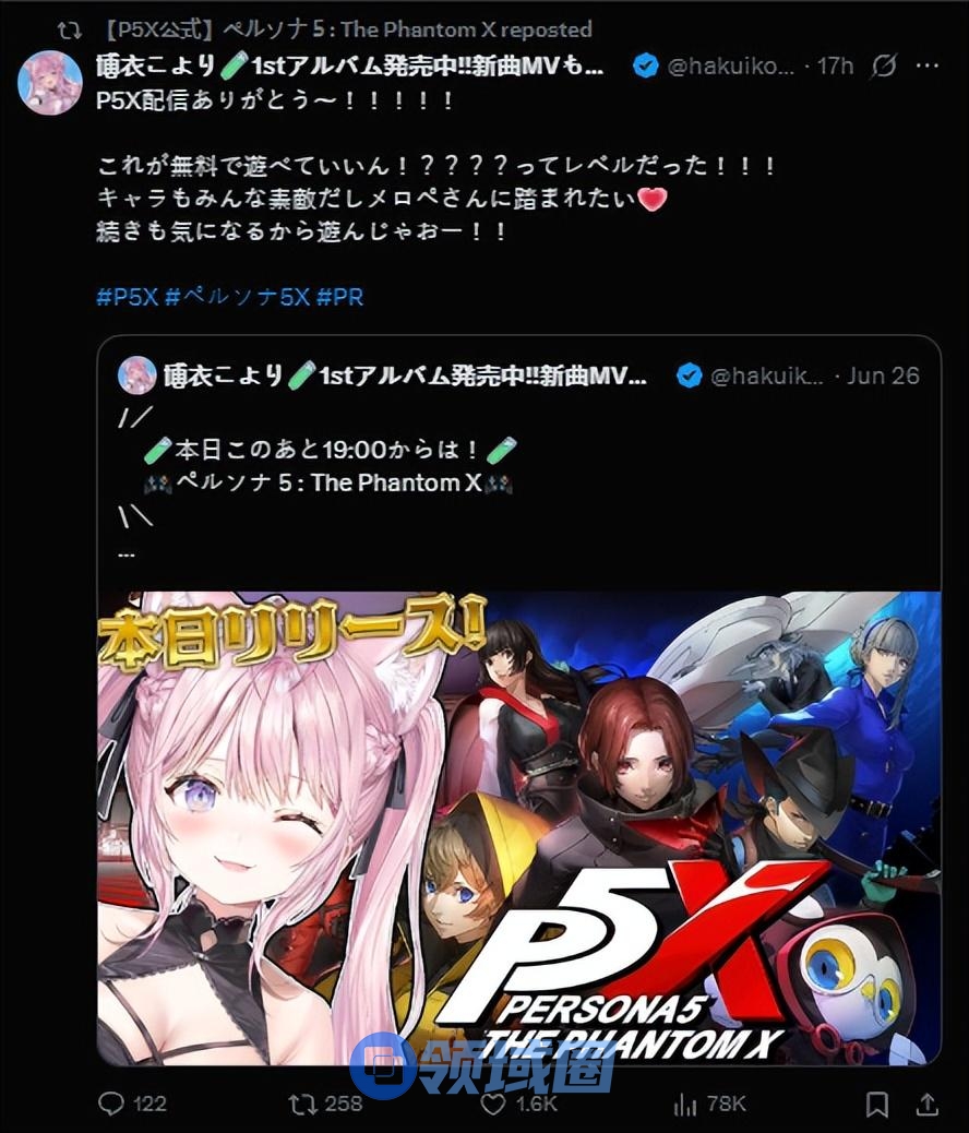 《P5X》最早在2020年立项,是一款由完美世界黑羽工作室开发、Atlus深度参与及监修IP手游。而它所基于的IP《女神异闻录》是玩家高呼“P5天下第1”的主角。这一系列由Atlus在1996年推出首作,至今已推出5部本传游戏,其中集大成者《P5R》获得IGN10分满分。因此,《P5X》自宣布起便获得了玩家的高度关注,在测试期间也获得了玩家好评。
