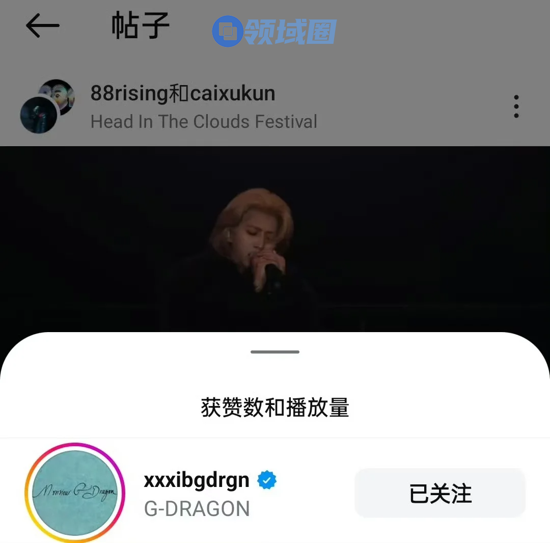 新曲上线不久,便横扫了国内各大音乐榜单,在海外也收获了不菲的热度,连韩国流行天王权志龙,都在Ins上点赞了蔡徐坤在洛杉矶音乐节的舞台视频,堪称内娱2025最具冲击力的音乐作品之一。