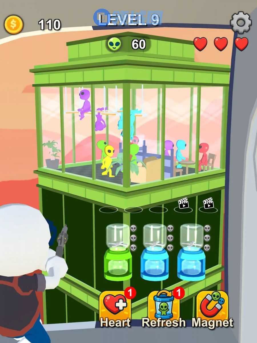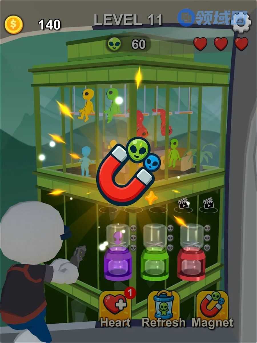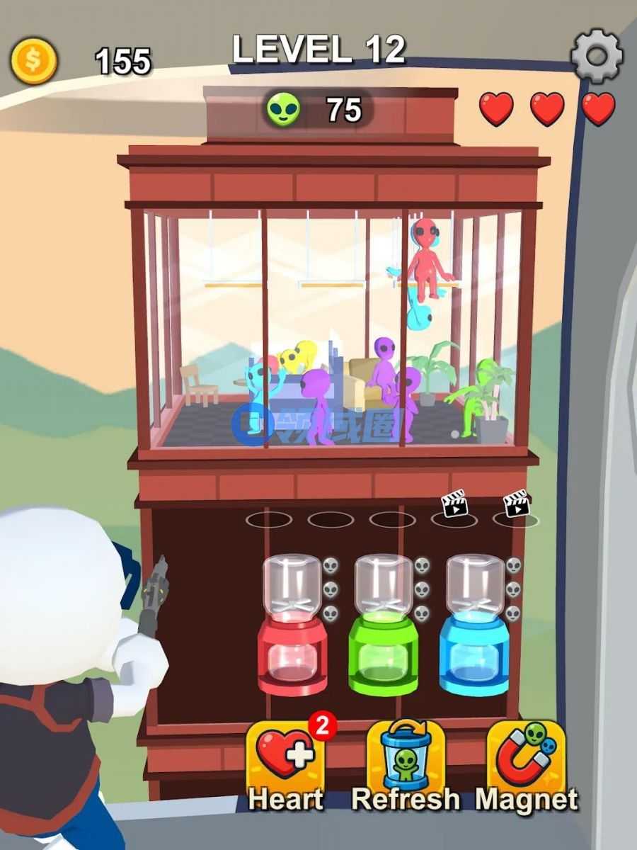 介绍:声明下前面的引号不是我定义的,是商店介绍的原文——。不过确实是很奇特的Match3玩法,题材包装是“收集外星人榨汁”,其实就是打外星人,不过用射击+Match3做组合我还是第一次见,相当于用射击玩法来代替之前Match3的点击。其余规则还是普通Match3的规则,在指定的block内消除3个同色的“棋子”,但套上打外星人题材,以及这个3D射击玩法之后,感觉整个游戏看起来有意思了不少,我愿意给这个创意想法打高分。