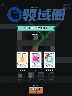 这款不光是围绕着物理反射的终点射到哪里做文章,而是要让激光路径尽可能多的覆盖关卡的路径从而对敌人造成更高伤害,游戏中也有简单的2合升级、反射镜反光、透镜反光、棱镜反光等多种物理反光玩法,以及搭配了个简单的肉鸽3选1buff,整体游戏玩起来时候去调整光路从而让光在路径上尽可能扫过更多面积还是挺好玩的。