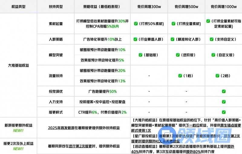● 额外权益方面,新增加了2025年首发新游的额外权益,大幅升级了大推扶持资源;并针对版更场景推出叠加扶持政策,对符合条件的产品在第 2 次、第 3 次版更时分别提供 KOL 激励金、互动直播等资源加码,实现资源的定向加码与价值再放大,进一步助力产品在营销关键节点实现突破。