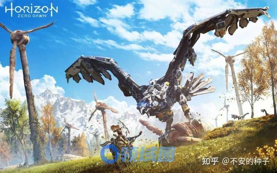 虽然地平线的玩法很多人都觉得乏善可陈,但说到游戏的画面,在当时确实是顶级,弓箭射史前机械的画面让人印象尤甚。
