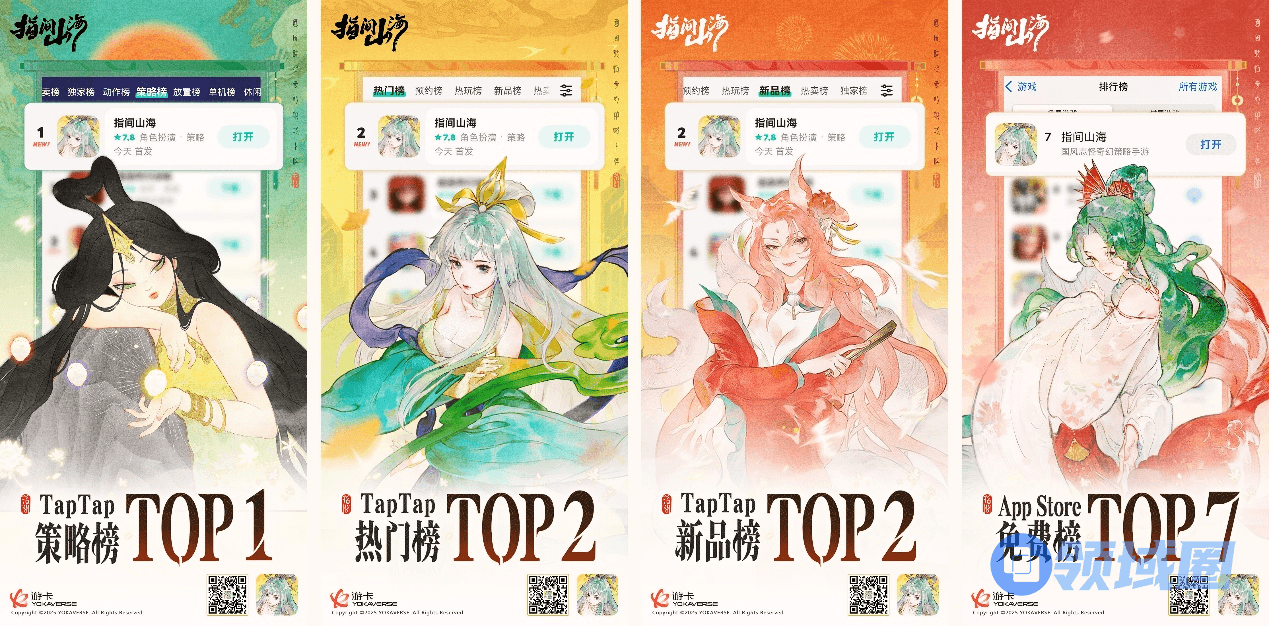 6月26日,国风策略卡牌手游《指间山海》开启全平台公测。游戏上线首日便横扫TapTap各大榜单:策略榜登顶TOP1,热门榜和新品榜跻身TOP2,免费榜TOP7。