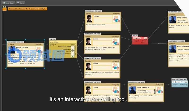 在《底特律变人》的开发过程中,策划使用了内部工具去完成大量分支选择的场景。