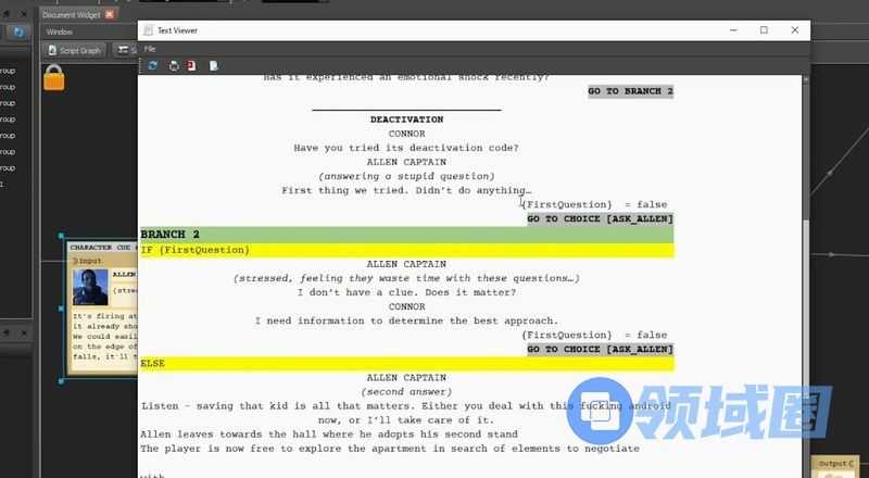《底特律:变人》DialogueDesigner界面