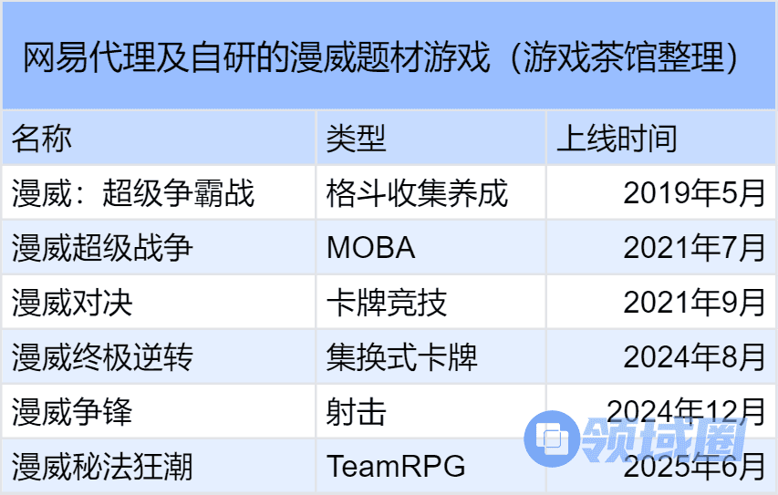 随后,网易便开始死磕漫威品类。从最早代理发行的《漫威超级争霸战》,网易在6年间高校共推出6款漫威游戏,玩法更囊括MOBA、集换式卡牌、射击游戏和TeapRPG等多种品类。