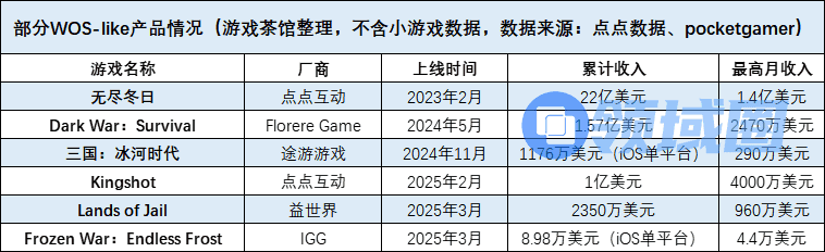 我们将这类产品统称为"无尽冬日like",或者"WOS-like"。