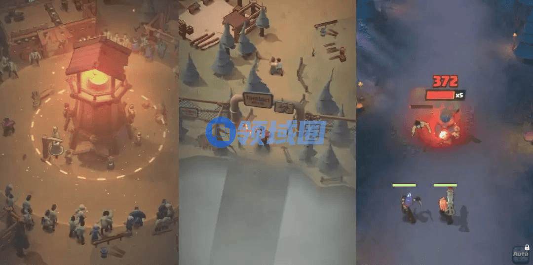 游戏开局就与其他几款“无尽冬日like”不同,不再是末日生存的氛围营造,而是融入了类似于《Thronefall》轻度塔防的玩法。玩家只需滑动手指,就能控制国王灵活走位,松开手指,国王就会对范围内的敌军进行自动攻击,最终抵御叛军进攻,保护村名安全的同时,获得一定资源奖励。