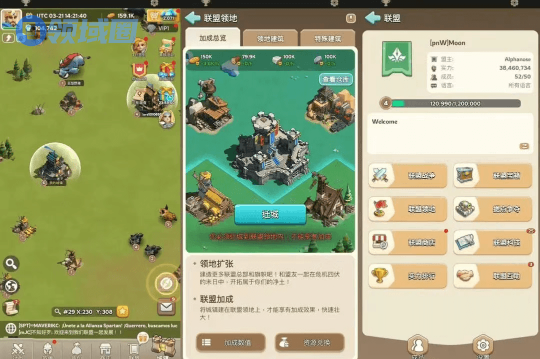 随后,游戏早期将继续围绕塔防战斗、获取资源、建造经营、招募士兵、应对更强大的敌军这一循环进行推进。直到主城升到一定等级,即可解锁COK-like沙盘玩法,开启资源掠夺、联盟战争等更多SLG玩法。