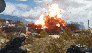 从大的战场影响来看,全面战场的写实调性和强叙事感,就需要考虑更多的细节,以及前面所提到的,细节元素影响战局,进而影响整个模式的成败。在动态天气系统中,除了晴天、暴雨、雷暴、狂风四种天气因素,玩家也可通过发射洲际导弹改变局域天气,让紧张的团队战事气氛更加刺激,充满着“天时”对战术的考验。玩家的攻击也会在战场上留下显著的痕迹,比如攻击巨型油桶罐时,会引发剧烈爆炸,在地面留下大坑,这些弹坑可以踏入,成为玩家的掩体。动态天气和地形可破坏的加入,让全面战场更加立体和具有真实感。