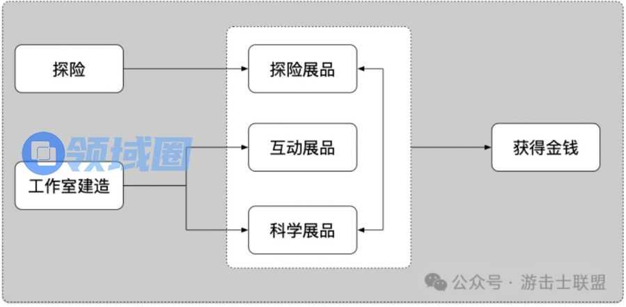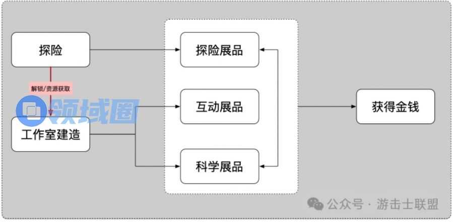 - 玩家阶段性划分:前期探险普通展品,中期后开启工作室建造后,科学展品属于探险的高级产物,可以算是某种意义上的模式升级。