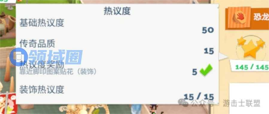 - 动态:装饰热议度,热议度任务奖励。在展品旁边放置装饰物可以提高装饰热议度,热议度任务奖励则是需要摆放特定的装饰或者完成某种特定的任务来达成。