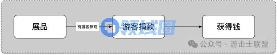 本作中展品获取钱的核心方式叫做捐款,即玩家看到你的展品不能自己,甚至得了“司汤达症”,强烈要求给钱。,于是就有了下面这个最简单的流程。