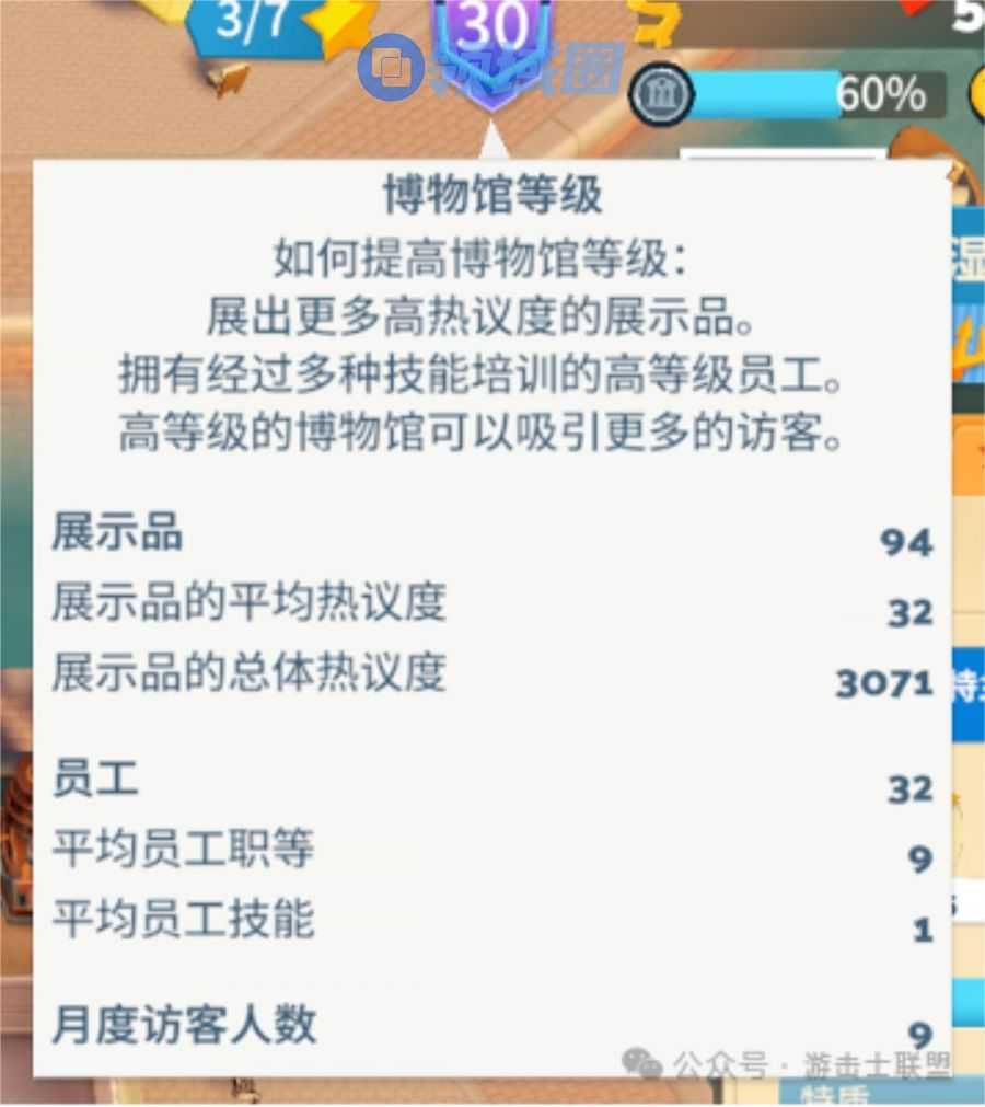 提高博物馆的等级可以提高游客的评价,而博物馆等级的提高就是一个积累效应,需要积累很多的展品并且保证他们有一个高的热议度。
