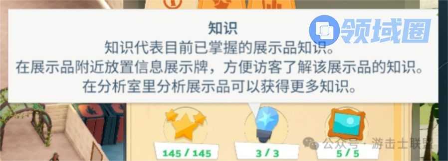知识属性的主要作用是增加游客在场馆内获取知识的数值,这个数值会影响游客重复来访以及对博物馆的评价,不过这个属性是否会影响提高收益,并不清晰,同时这个属性的作用游戏中说的也不是很明白,这点设计上是缺乏一些目标性的。体验上这个知识的属性最重要的作用是用来处理获得的重复且无用的展品。(这里我觉得UI上有一些问题,展品知识被放在了热议度的旁边,且是一个很重的位置,我起初以为展品知识和热议度有关系,后来发现并没有)。