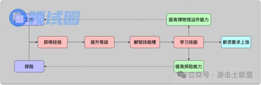 员工的成长同时也影响了博物馆经营和探险(尤其是探险)的成长。后期探险需要员工有恰当的技能能力和等级,这也进一步促进了玩家对员工成长的投入。