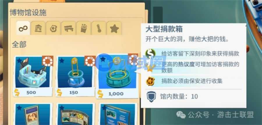 建造/获取更多的展品:这一部分主要消耗的还是博物馆的空间资源,展品往往比装饰消耗更大的空间。
