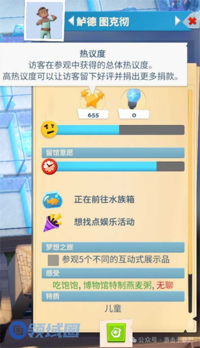 访客系统是资金来源的核心载体(捐款),同时以一个叙事逻辑的方式,指导玩家进行博物馆的设施建设。