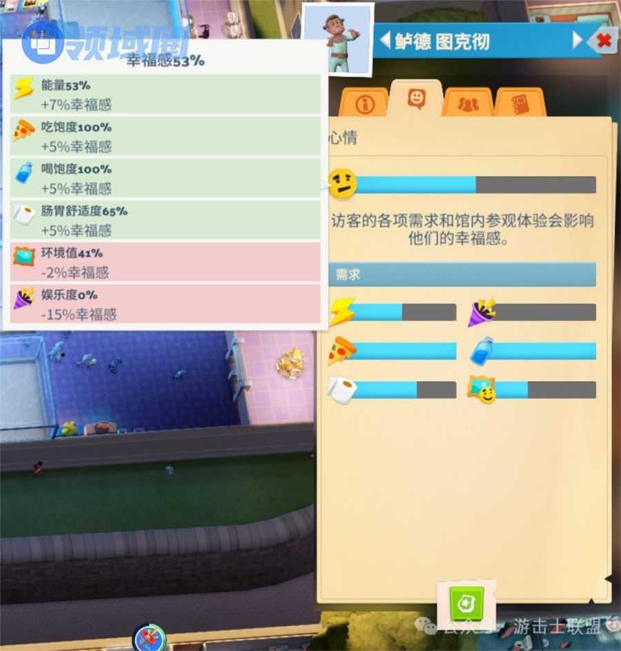 - 生理需求:员工的生理需要要求玩家考虑建设公用的场所