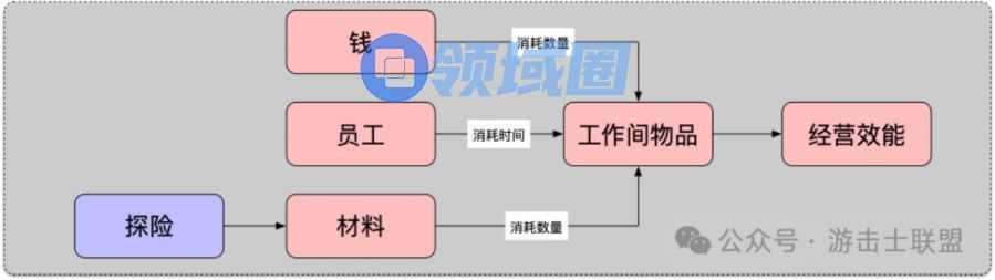 绝大部分模拟经营游戏的底层资源循环如下图,同时可以包括一个或者多个这样的循环,循环的每一个环节都可以进行发散设计,来形成子系统。