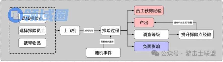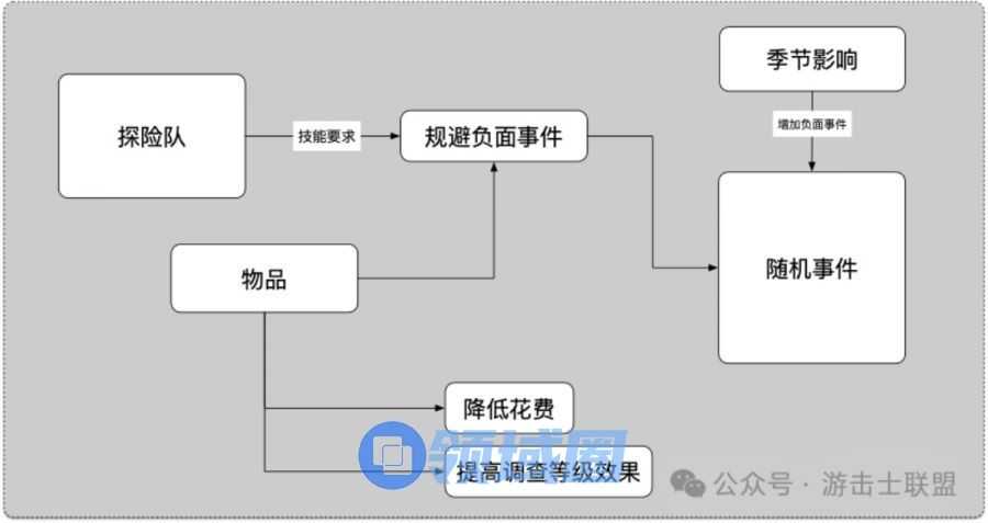 - 随机事件处理:探索中的随机事件处理,若处理结果较好带来的正向收益,则可以给玩家带来成就感,反之则会带来挫败感。