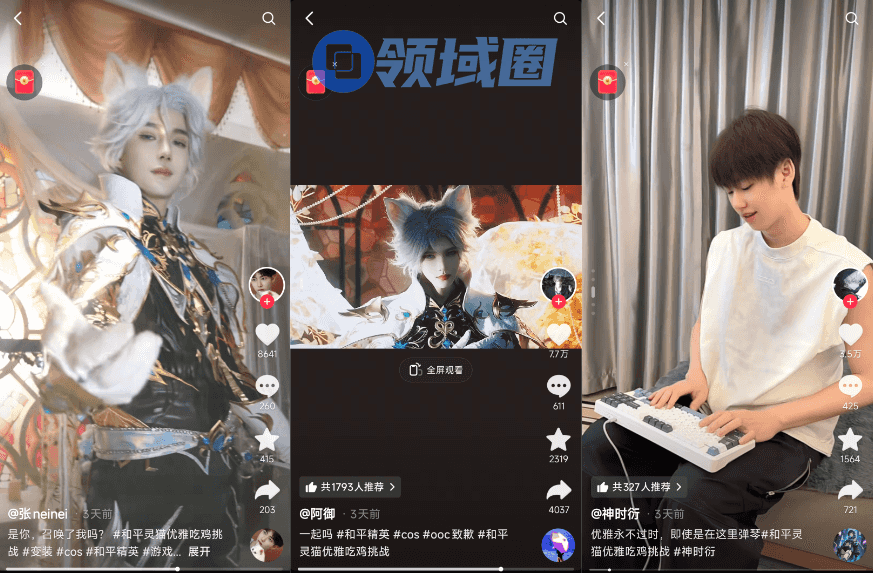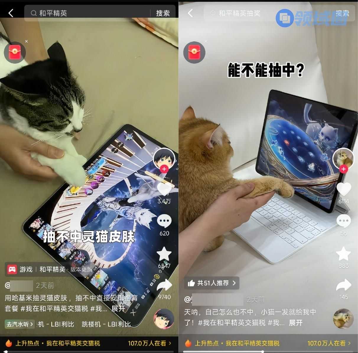 与此同时,内娱明星李昀锐还对“灵猫魔法师”进行了一波精彩的COS演绎,引爆了一波铺天盖地的公众讨论。还有不少网友来《和平精英》“交猫税”,晒出自己和猫咪的各种互动:让自己的猫帮自己抽新神装卡池,带着猫咪一起打和平……一派其乐融融的热闹,相关热搜也是一茬接一茬地冒出。