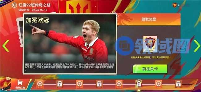 除了引进红魔传奇球员助阵外,主帅们更可以在虚拟绿茵场上第一时间沉浸体验曼联王朝的重大时刻,红魔92班传奇之路现已开启,活动期间体验比赛剧情,完成任务,即可用积分兑换85+红魔混合球员包。