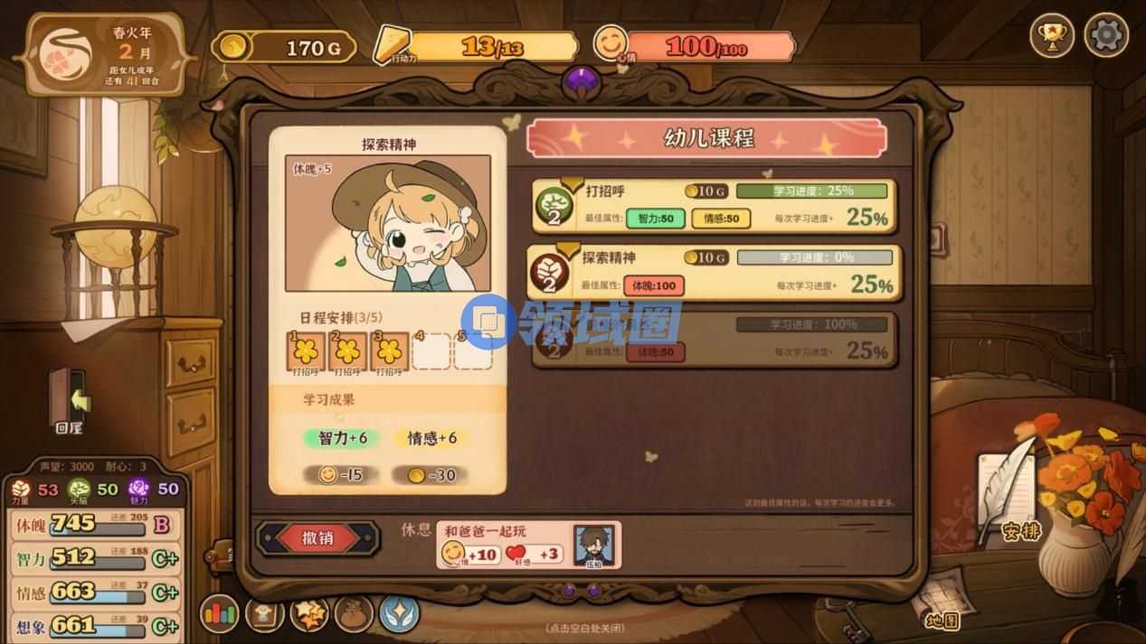 作为养成游戏,《火山的女儿》提供了数十种小游戏和养成方式。你既可以和女儿玩各种小游戏共渡美好时光,也可以选择剑术、文学、炼金等多种课程,在智力、体魄、想象等方面进行着重培养。除了数值上的体现之外,这还将影响后续女儿的性格和处事方式,真正让玩家感受到将女儿养育成人的成就感。