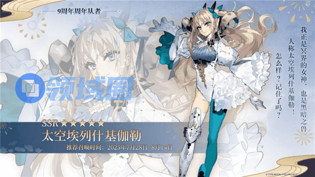 7月28日,《FGO》9周年庆典将携限定从者“太空埃列什基加勒”重磅登场,海量福利与重磅更新静候开启。更令人振奋的是,8月8日起,《FGO》FES 2025将震撼登陆杭州,带来规模空前的《FGO》专属线下盛典!从BW2025的惊艳亮相到FES2025的盛大集结,《FGO》线上线下联动、更多惊喜内容与沉浸互动体验即将轮番上演,这个夏天,《FGO》的精彩永不落幕,敬请期待!