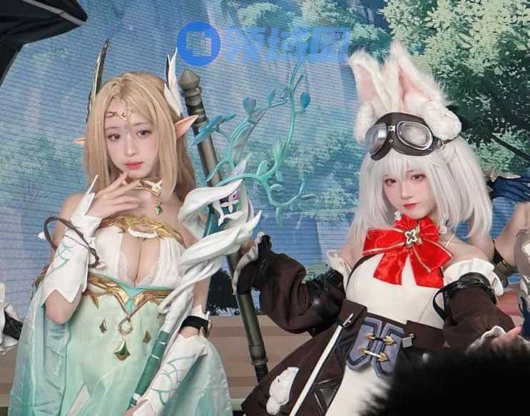二次元展会怎么少的了COSER?《蓝色星原》的美少女角色米砂与诺诺从游戏中走到展台。COSER高还原的的妆容与高质量的道具,将角色的魅力立体化展现,吸引大量玩家驻足拍照。