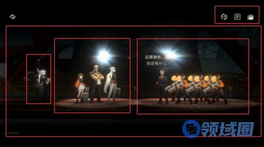 在画面布局这一方面,《新月同行》是其中的佼佼者。《新月同行》的原画组长小葉在此前与其他媒体对谈的过程之中提到“框外风景”的概念,这既是游戏新怪谈的一种冒险设定,也是游戏画幅布局设计的一个重点,无论是在立绘对白、剧情演出,还是在游戏的战斗画面里,游戏都会将画面切割成合理的几个“框”,将不同的元素合理的分配在不同位置,赋予整个画面极为舒适的分布效果。