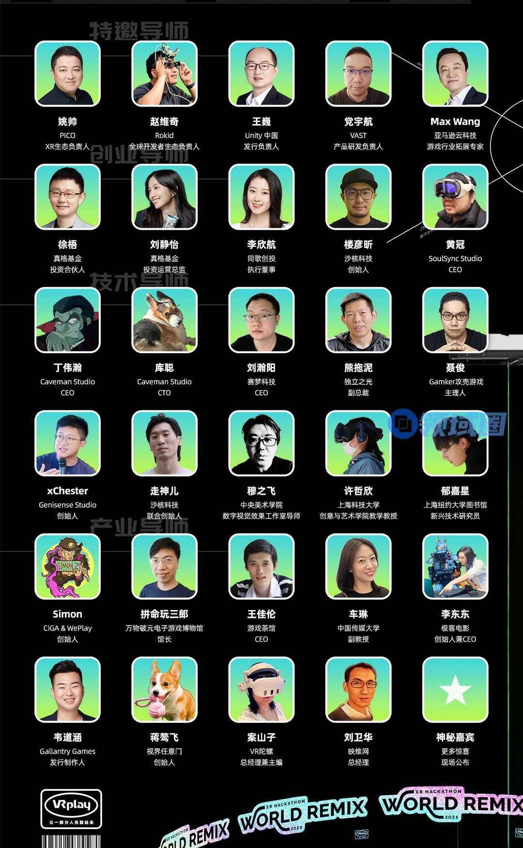 本次黑客松的导师团,由关注 XR 领域的投资人和发行商、成功的 XR 创业者和企业家、资深从业者和技术专家、以及跨领域的知名行业人士组成,另外还会有神秘嘉宾坐镇,他们会从创意、技术、实现、以及商业化等多维度为大家提供助力。