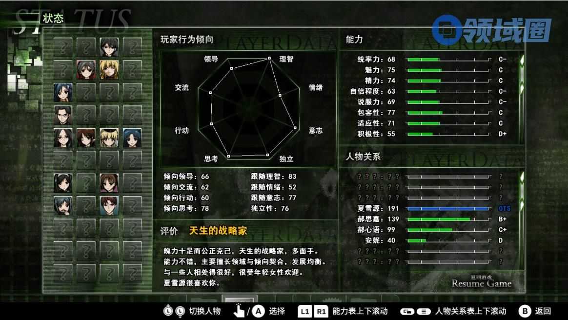 遵循故事,玩家所做的每次选择都会被忠实收录。这些不仅仅会影响到其他角色的好感度、玩家角色的属性,也会打破第四面墙,成为玩家角色的性格反馈。