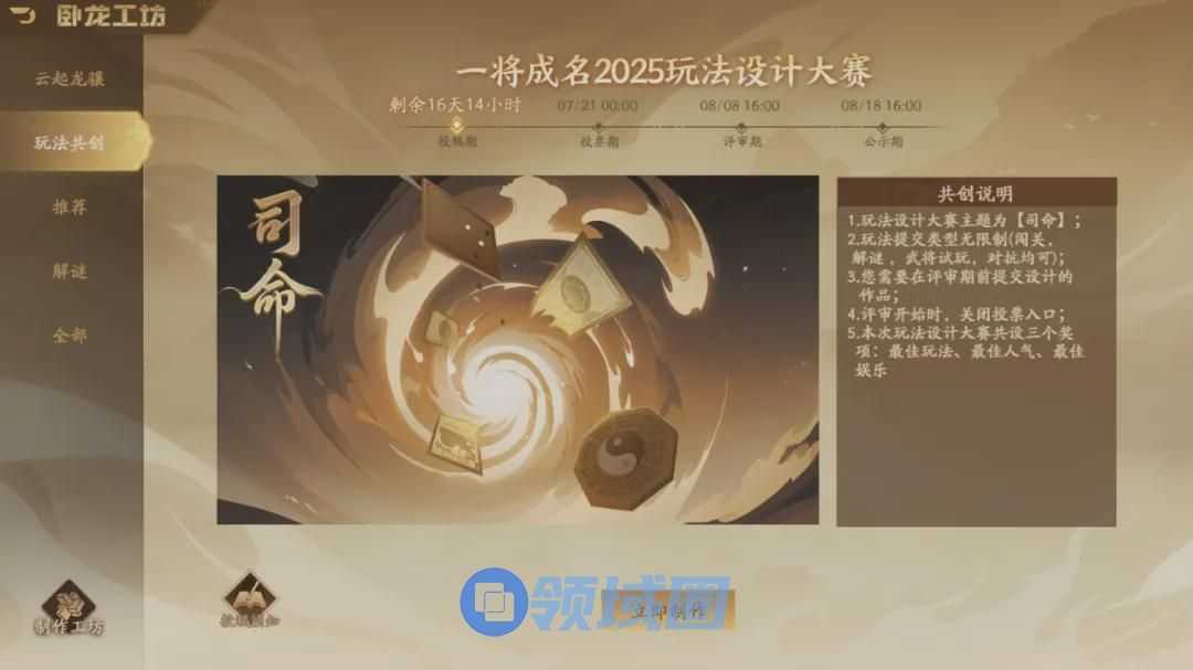 随着《三国杀:一将成名》在“创玩节”期间宣布将“卧龙工坊”并入“一将成名设计大赛”板块,以及“玩家共创体系”的上线,玩家共创的生态更加完善。玩家不仅可以围绕全新主题【司命】展开游戏玩法方面的共创设计,“玩家共创体系”还将永久展示历届设计大赛的冠军作品,玩家自己的投稿作品也将得以留存,方便玩家回顾自己在共创设计方面的成长轨迹。据悉,该系统未来还将解锁共创板块的成长体系。
